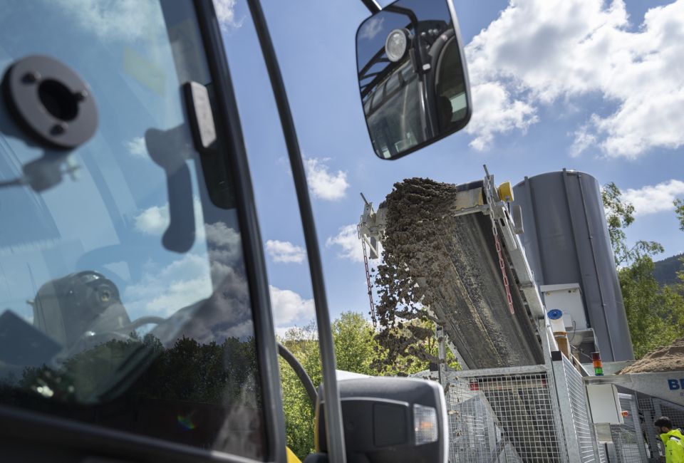 Die Betontankstelle verfügt über ein Mischwerk, das Frischbeton mit 5 verschiedenen Rezepturen produziert, durch die optionale Zugabe von Verzögerer, sogar mit einer Verarbeitungszeit von bis zu 3 Stunden. Per Selbstbedienungsterminal und QR-Code können sich unsere privaten und gewerblichen Kunden ihren gewünschten Beton zubereiten lassen und sofort mitnehmen.